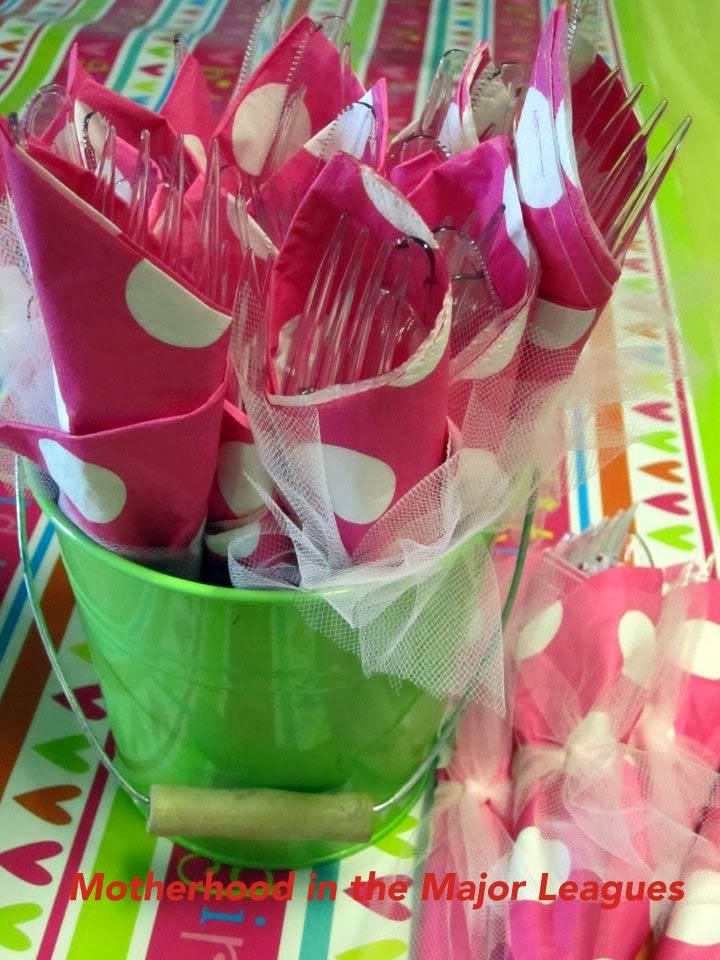 Etsy Shops that sell cut out owls and banners if you are not crafty. I have pictured them simply to give some ideas. Pick a color scheme and get creative! Balloons are a fun and easy decor and pictures of your birthday boy/girl are also fun to display. I also found a fun wrapping paper that matched my color scheme and made a table runner from it. So easy and adds some color to a plain tablecloth. It's all in the details. Fun straws were purchased at a party store or I know several Etsy shops carry them as well. Served drinks in mason jars and tied tulle around them. Pre-wrap plastic utensils in napkins and tie with tulle. Put in a cute basket! Make a little banner for the birthday girl/boy's highchair. Display pictures of your little one. We had taken monthly pictures so those were displayed.